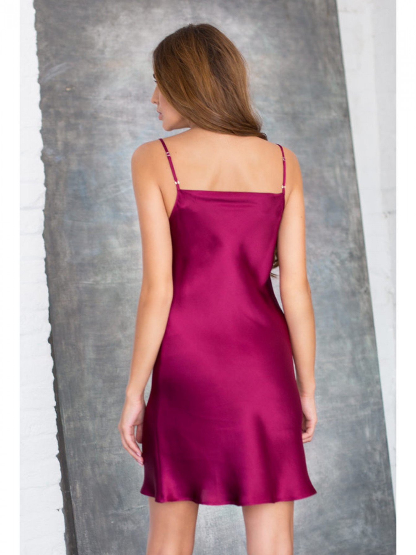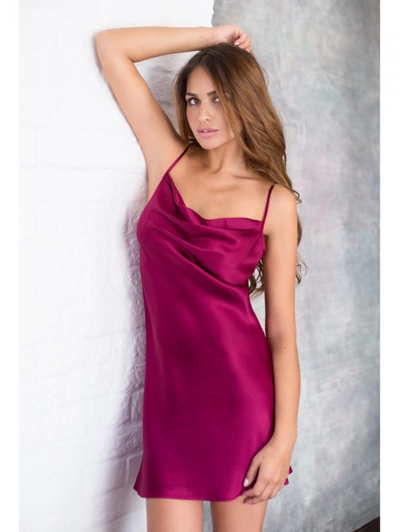 Сорочка полуприлегающего силуэта из однотонного натурального шелка, на тонких регулируемых бретелях. Изюминкой данной модели является драпировка по лифу. Глянцевая сторона шелка придают модели женственность.