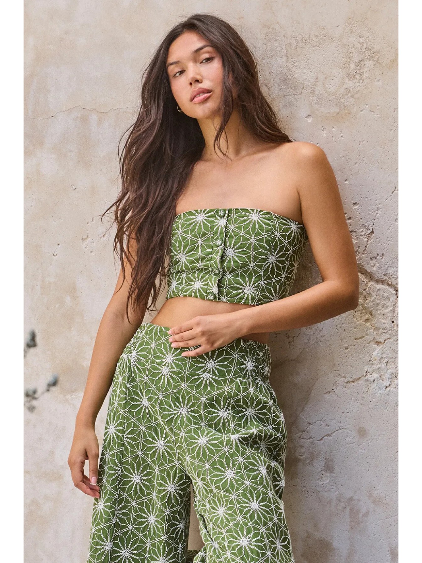 Топ-бандо Liria без бретелек. Присутствуют элементы ручной работы: плетение и вышивка. Сочетайте с брюками 15157 Mar