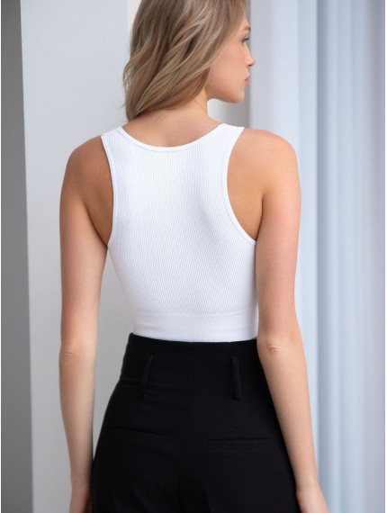 Женский топ в рубчик из полиамида очень мягкий на ощупь и приятный к телу. Благодаря высокой эластичности топ не сковывает движения.Данная модель будет отлично сидеть по фигуре благодаря плотной резинке снизу и при этом комфортно ощущаться на коже.Изделие прекрасно подойдет для занятий фитнесом, йогой, танцами, гимнастикой, бегом и другими видами спорта.