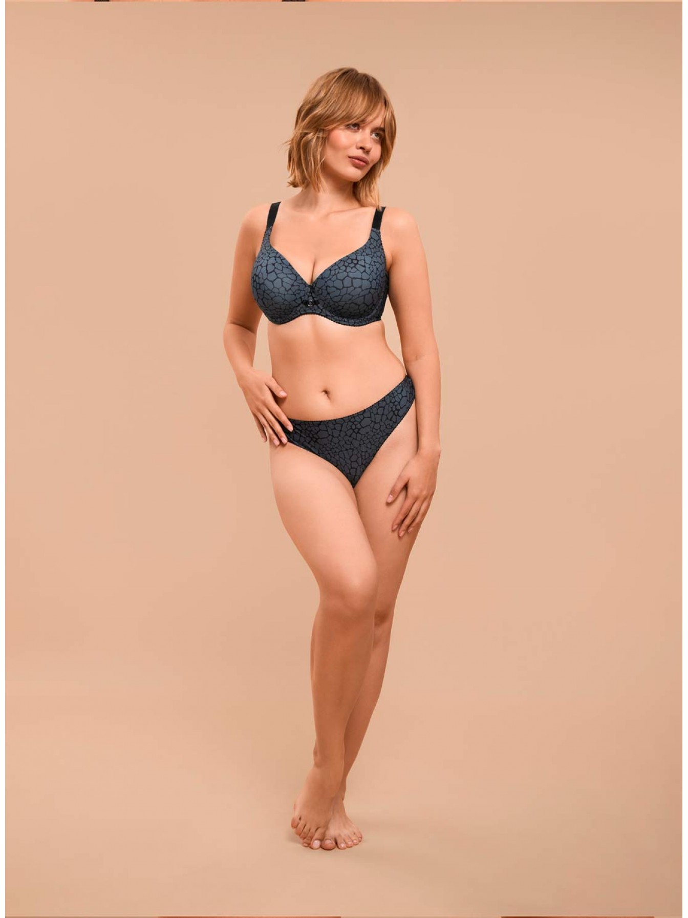 В линии «Морской цветок» в единую композицию сплетаются элементы флоры и фауны. Графитовый оттенок принта продолжается в ажурных деталях изделий, делая созвучными разные по фактуре материалы. Приглушенный морской делает нижнее белье одинаково гармоничным для светлой и смуглой кожи.