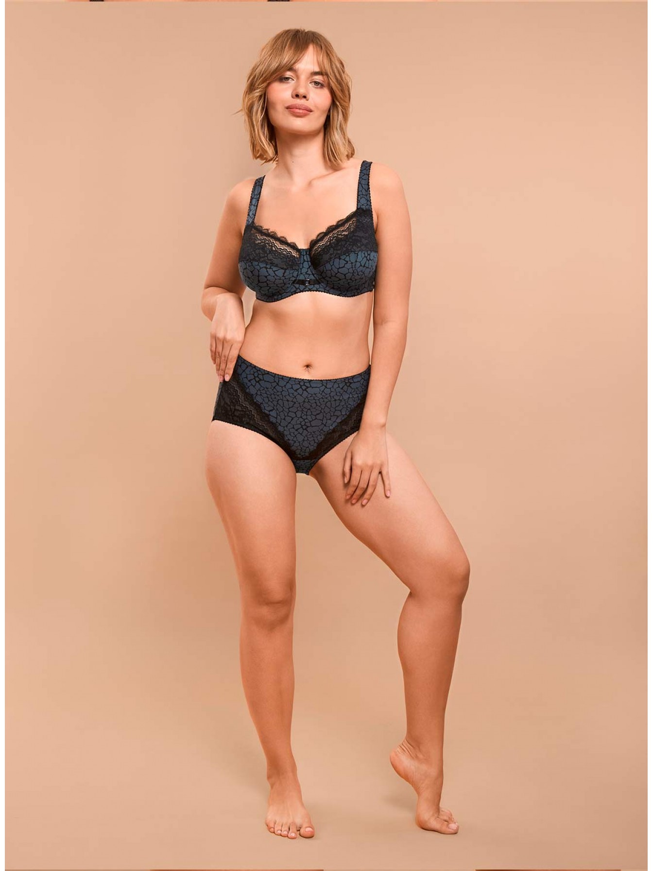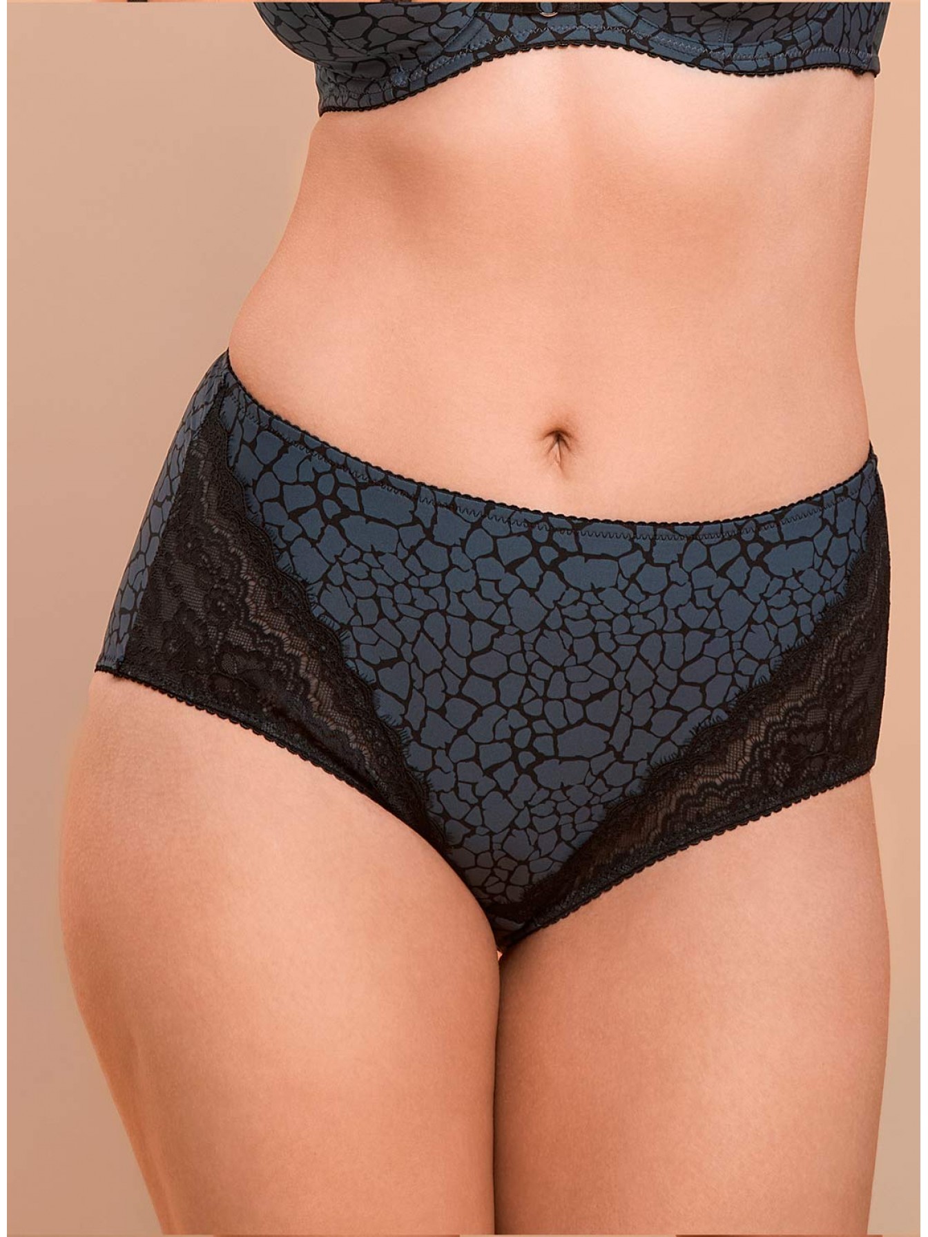 Трусы-слипы с высокой посадкой выполнены из принтованного полотна и эластичного кружева. Передняя деталь на подкладке из мягкой эластичной сетки. Не пережимают и не врезаются в тело, не стесняют движений. Сохраняют естественную форму ягодиц.