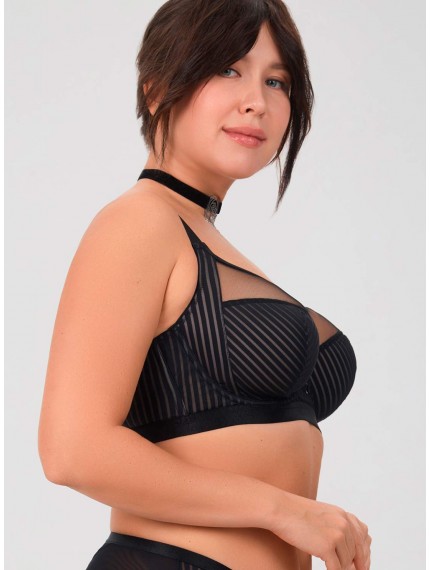 Стильный бюстгальтер с мягкой чашкой на каркасах выполнен из эластичного полотна с фактурным рисунком и неэластичной сетки• Закрытая чашка и высокая центральная деталь надежно фиксируют грудь• Нижняя деталь чашки усилена подкладкой из трикотажного полотна• Особый крой чашки с боковой поддержкой, собирает грудь с боков и направляет ее к центру• Боковые детали на подкладке из функционального полотна усилены стержнями• Изделие дополнено декоративными элементами с использованием серебряной фурнитурыСтрогость линий в дизайне с окантовками, эластичными лентами и полосатой фактурой разбавляют детали из мягкой прозрачной сетки. Словно Инь и Ян, линия «Нуар» дополняет «Бланж» и становится тем звеном баланса, которое напоминает, что полноценный бельевойы гардероб невозможен без комплектов в черном исполнении.