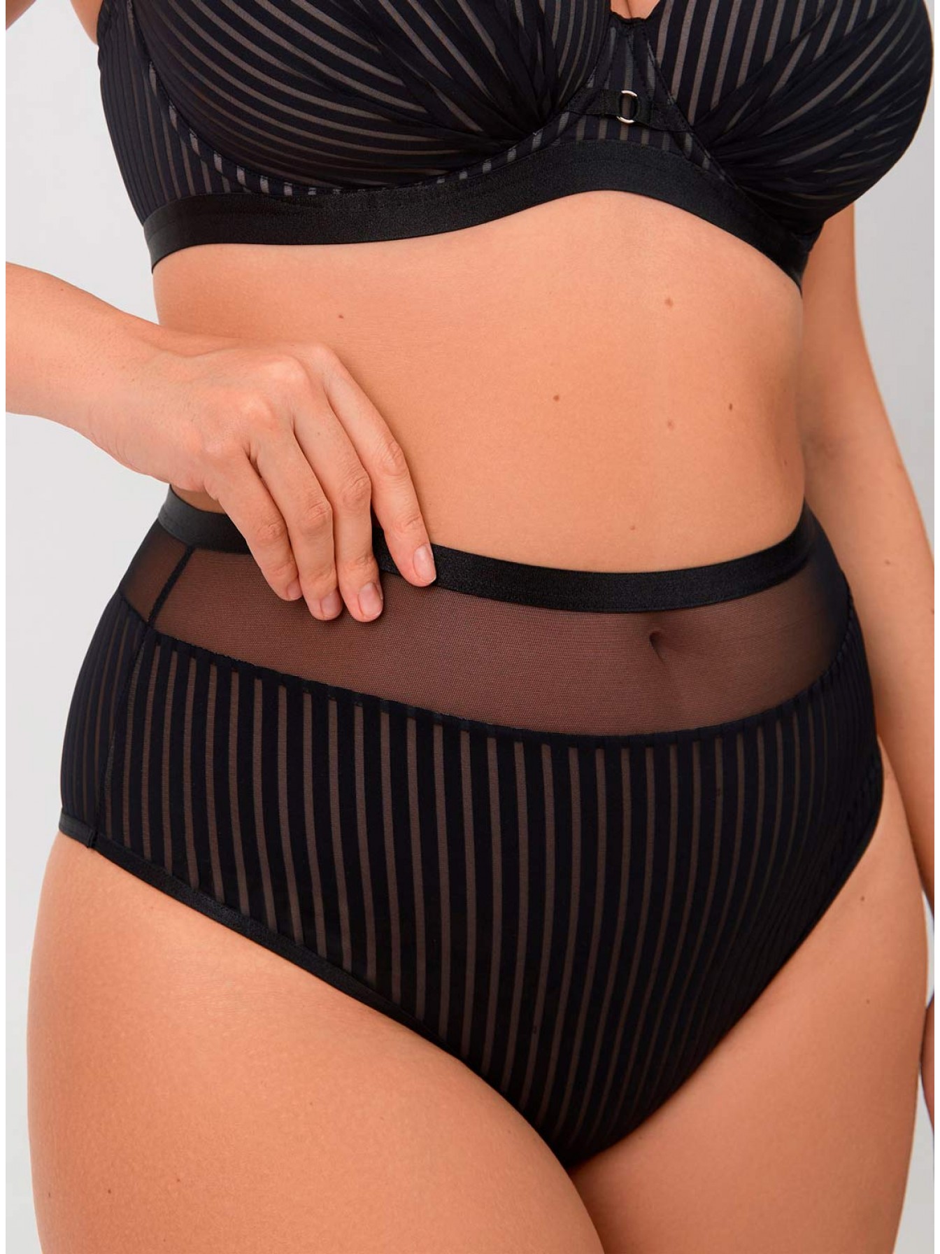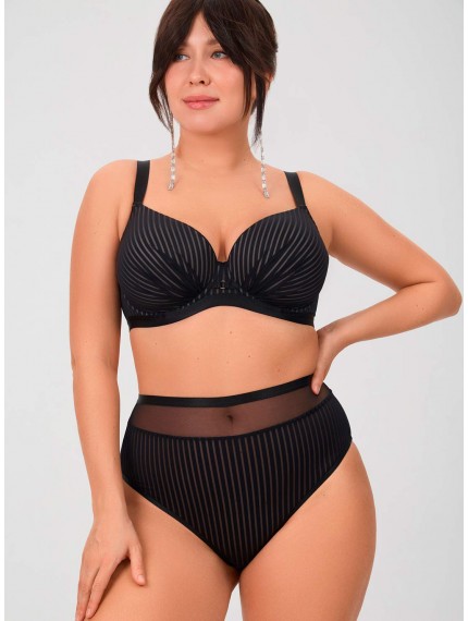 Черные трусы-хипстеры из коллекции «Нуар» выполнены из эластичного полотна с фактурным рисунком и эластичной сетки• Передняя деталь изделия продублирована подкладкой из мягкой эластичной сетки• Нижний край изделия обработан окантовкой• Не пережимают и не врезаются в тело, не стесняют движений• Сохраняют естественную форму ягодиц