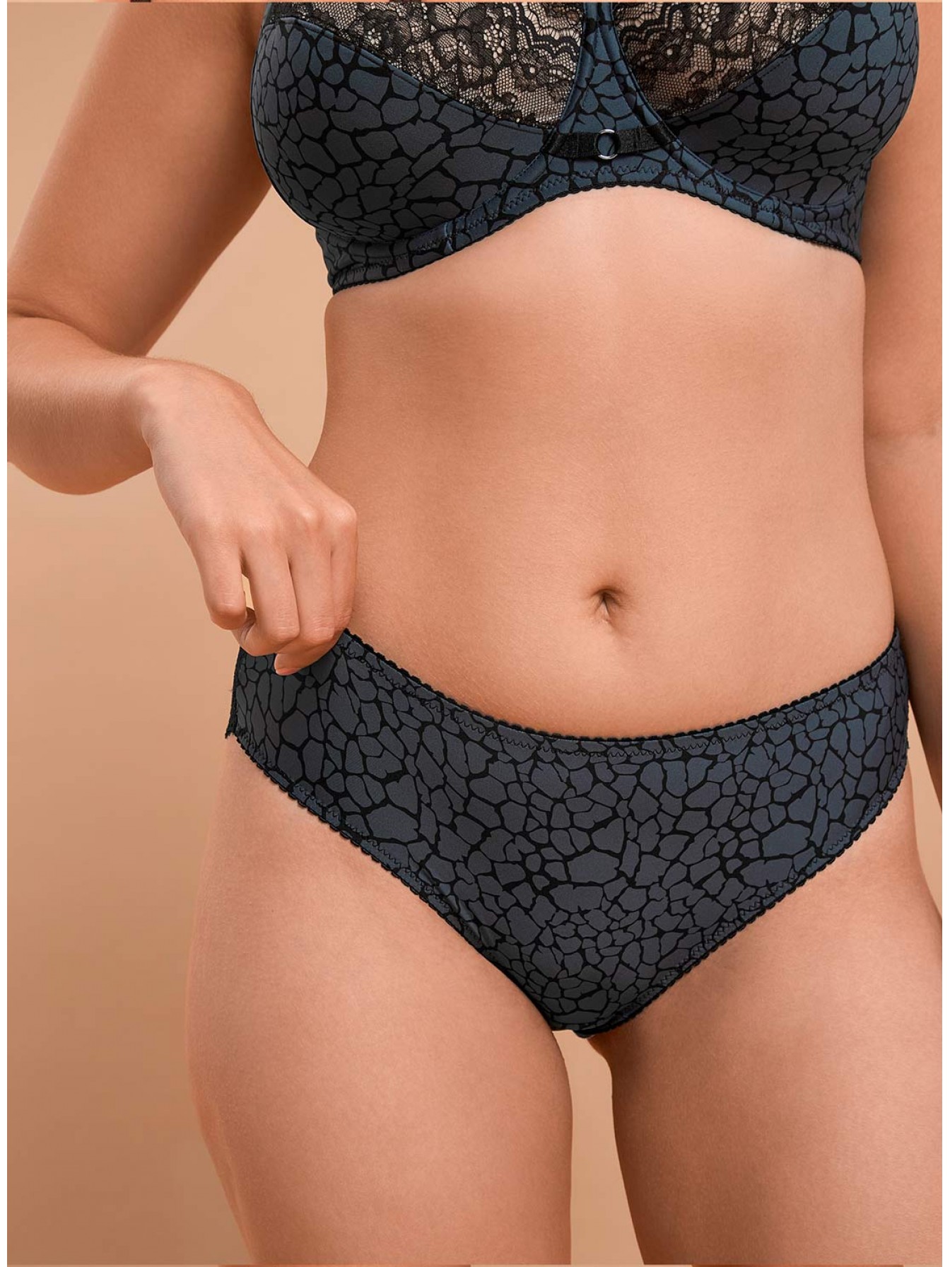 Трусы-слипы с низкой посадкой выполнены из принтованного полотна и эластичного кружева. Не пережимают и не врезаются в тело, не стесняют движений. Сохраняют естественную форму ягодиц.