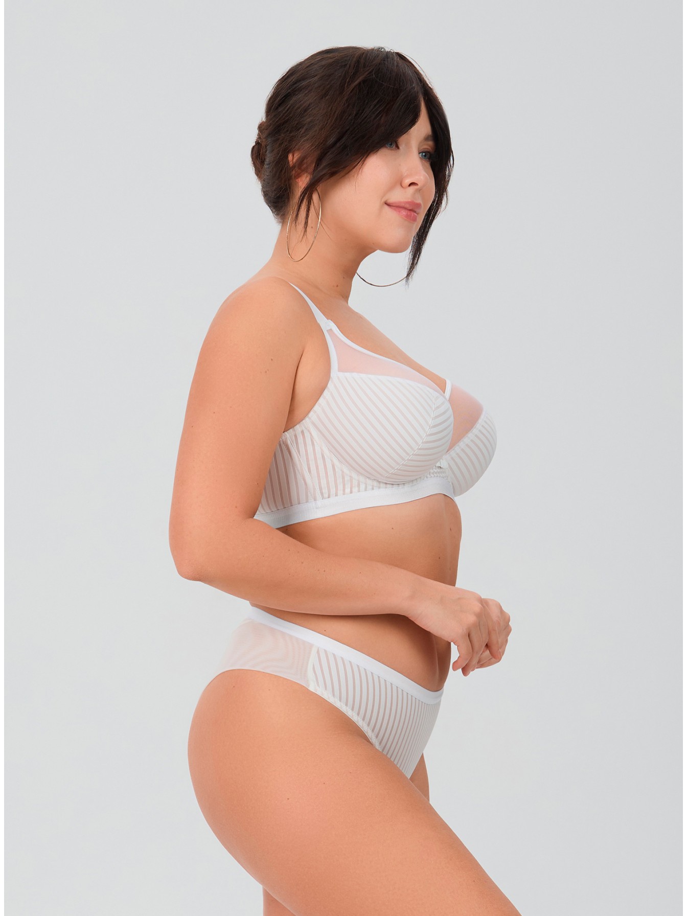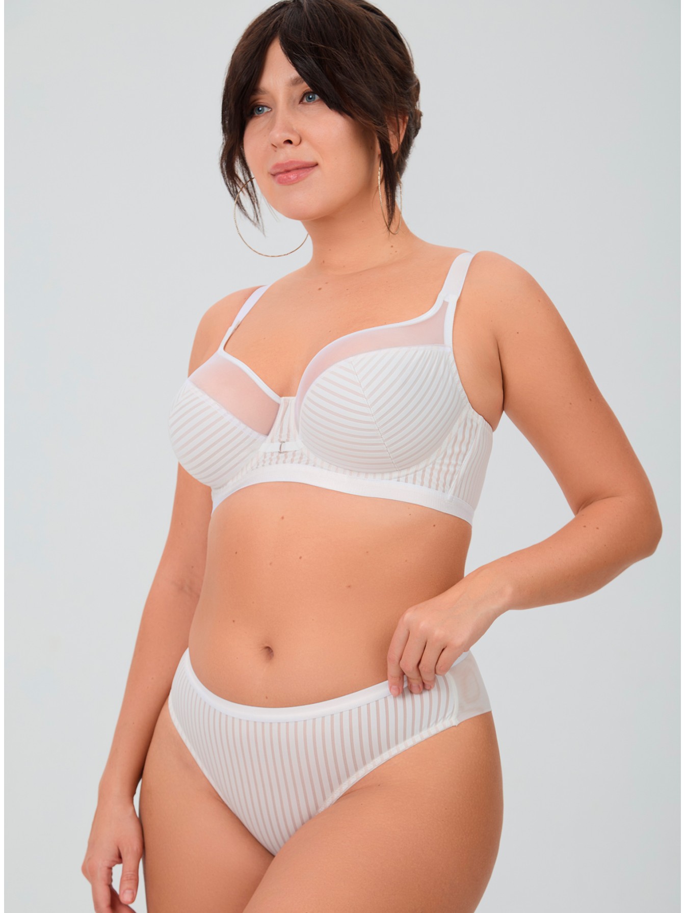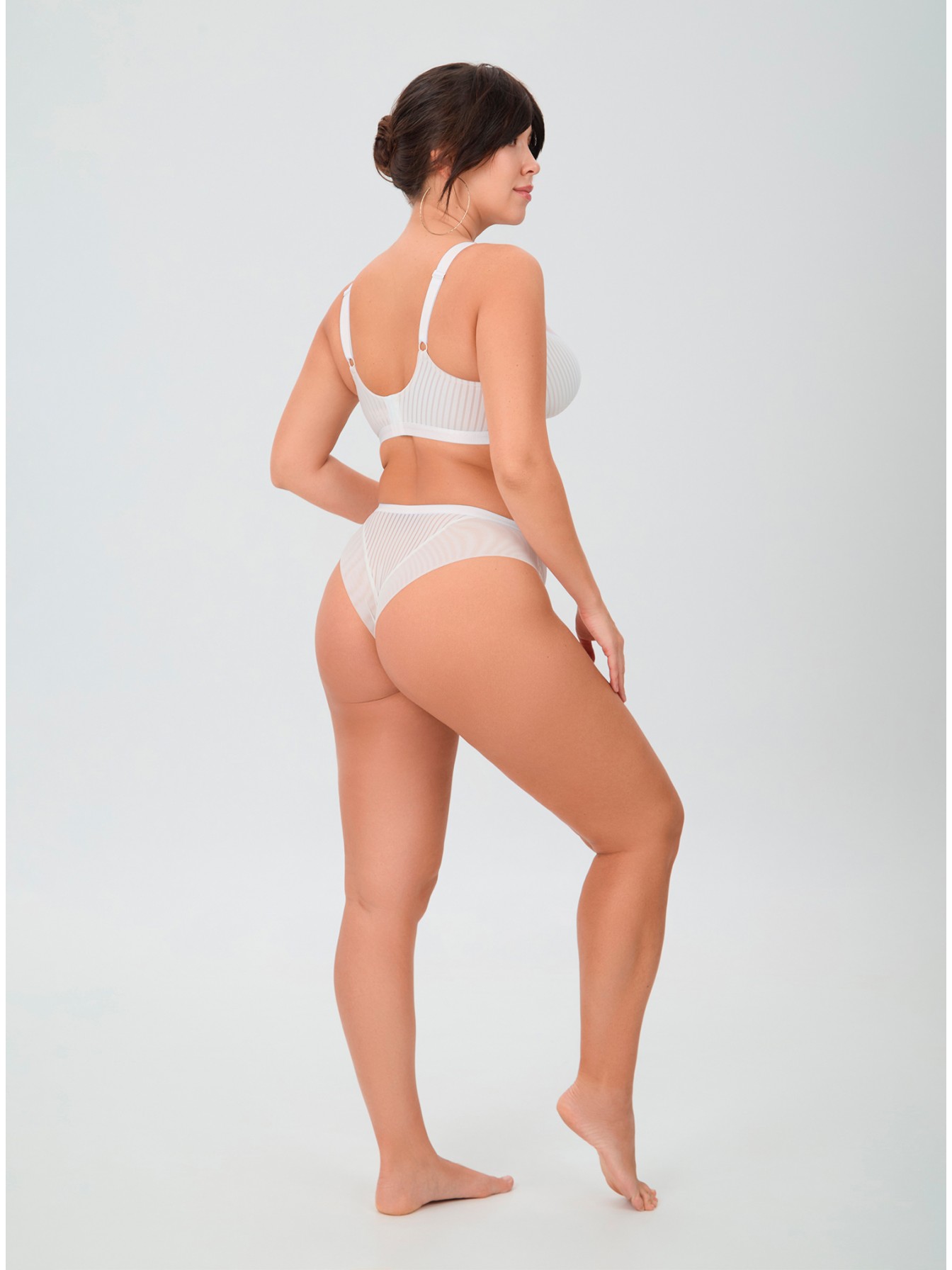 Белые трусы-хипстеры из коллекции «Бланж» выполнены из эластичного полотна с фактурным рисунком и эластичной сетки• Передняя деталь изделия продублирована подкладкой из мягкой эластичной сетки• Нижний край изделия обработан окантовкой• Не пережимают и не врезаются в тело, не стесняют движений• Сохраняют естественную форму ягодиц