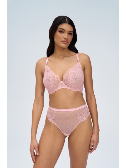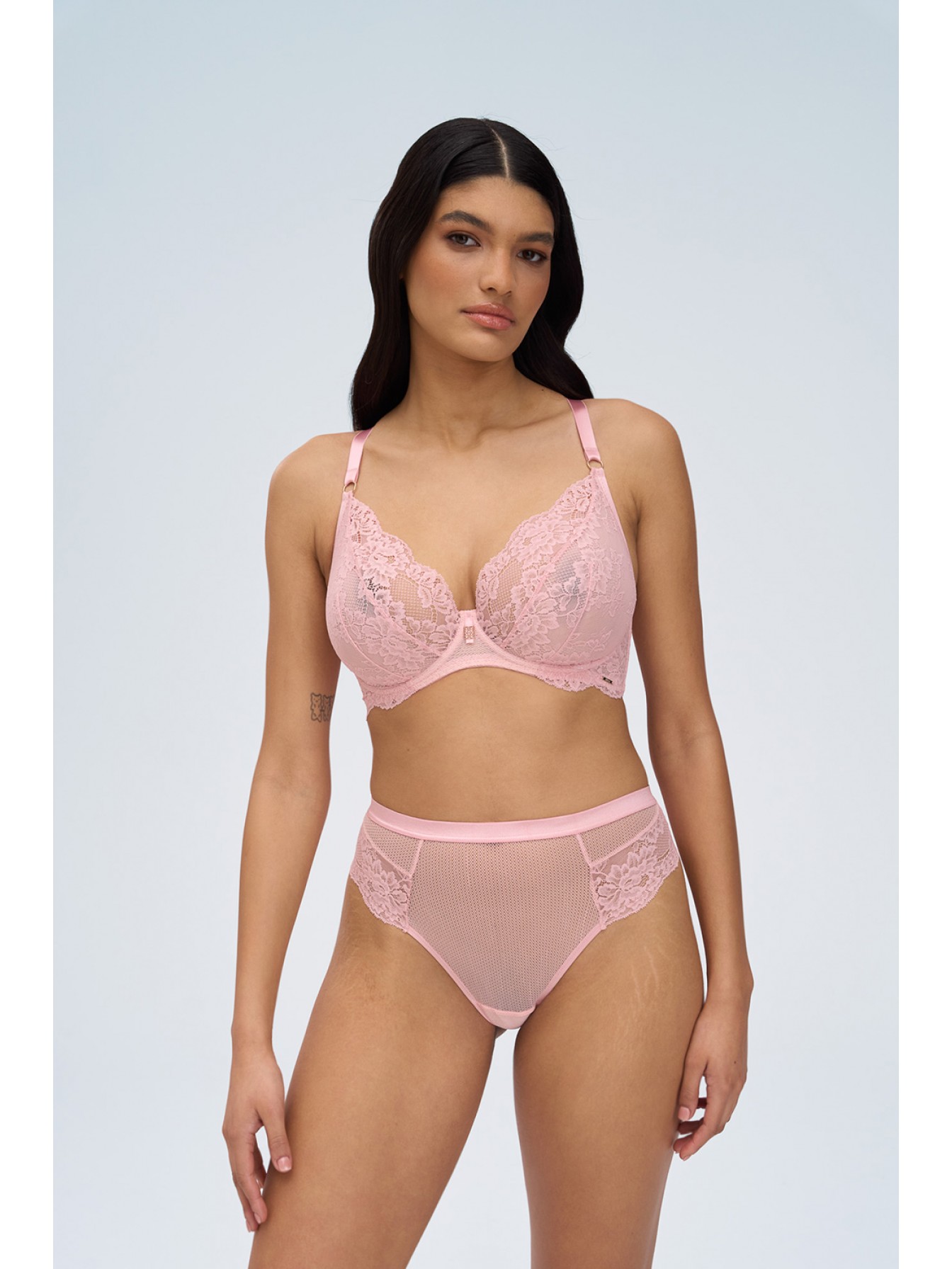 Высокие кружевные трусики-стринги Powder Whisper розового цвета. Ластовица хлопковая.