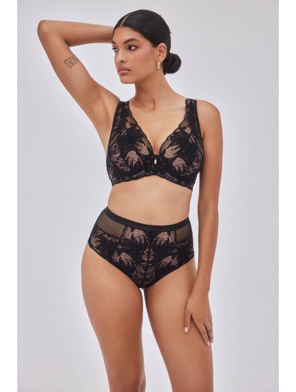 Высокие кружевные трусики-стринги Boudoir черного цвета. Ластовица хлопковая.