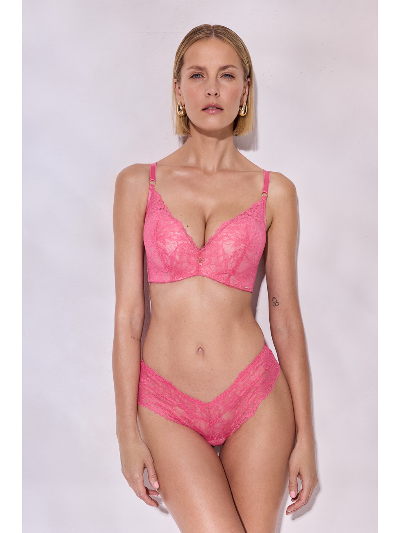 Трусики-стринги Coachella средней посадки. Выполнены из тонкого кружева с цветочным узором. Ластовица хлопковая.