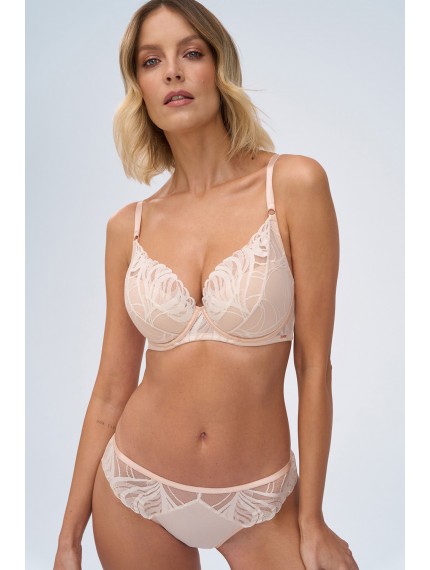Кружевные трусики-бразилиана Creme Brulee телесного цвета. Ластовица хлопковая.