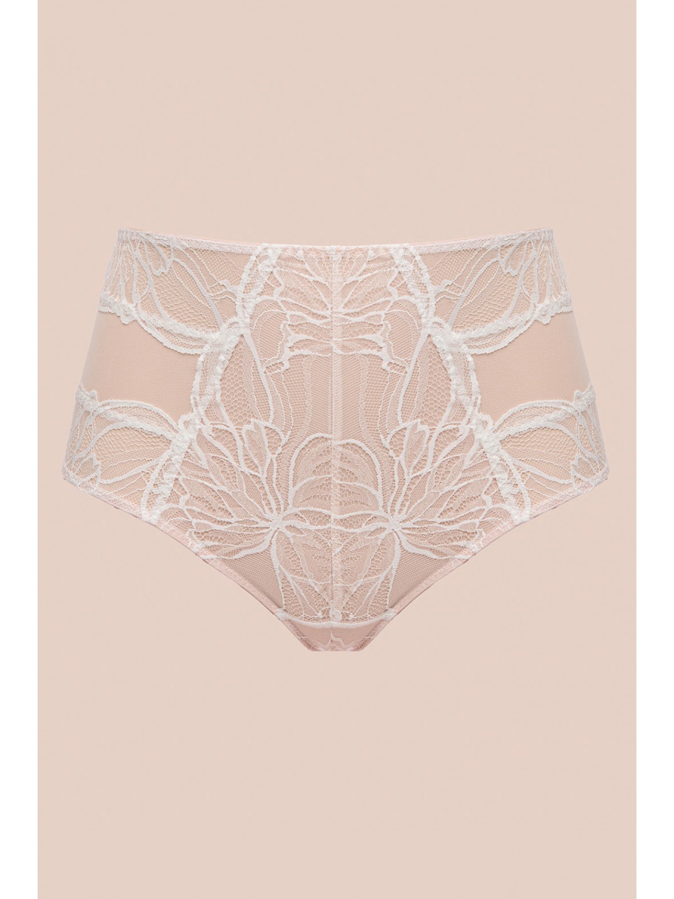 Нежные трусики-слип Fizzy Delight с завышенной посадкой и широким бочком. Цветочное кружево декорировано блеском. Ластовица хлопковая.