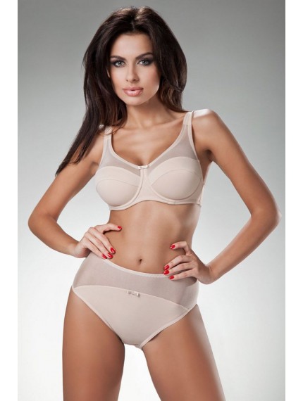 Трусики-слип с завышенной посадкой и широким бочком. Выполнены эластичной сетки и трикотажа. Ластовица хлопковая.