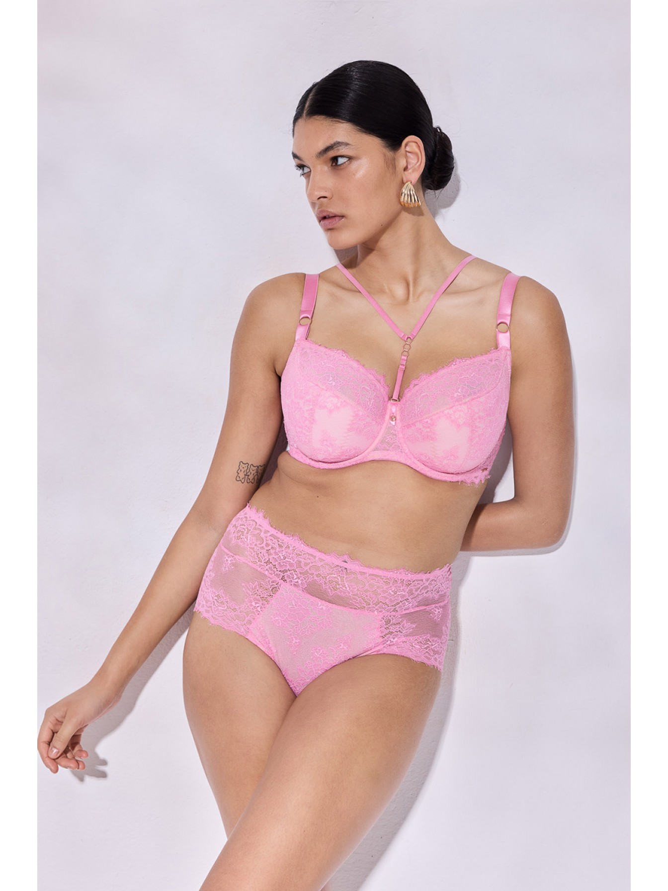 Кружевные трусики-слип French Kiss с завышенной посадкой и широким бочком. Ластовица хлопковая.