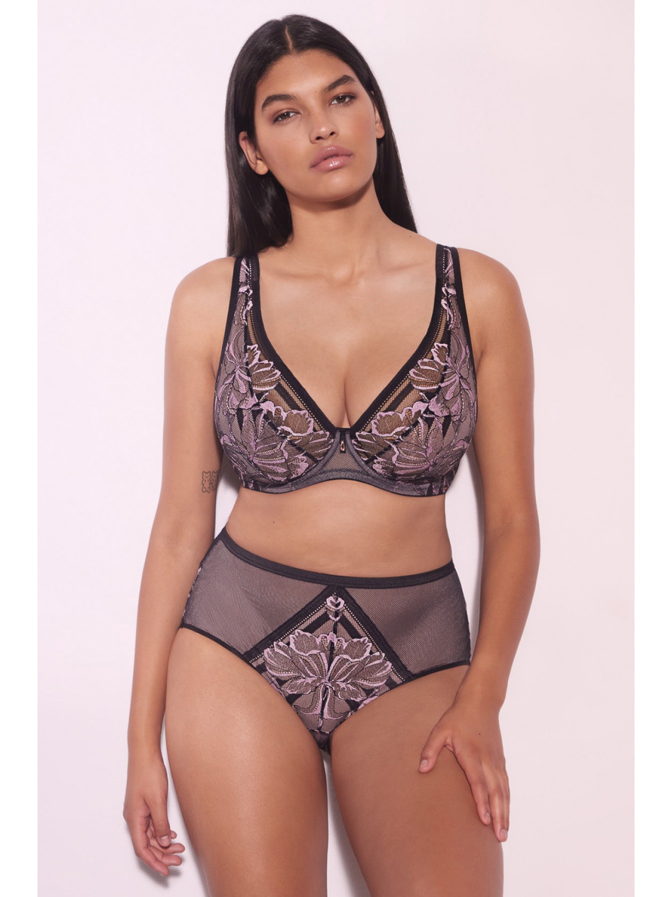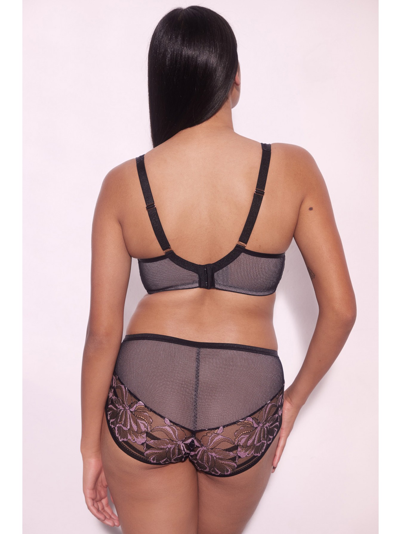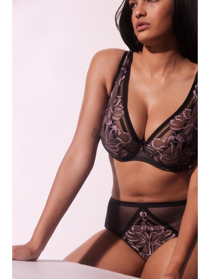 Кружевные трусики-слип Glossy Iris средней посадки. Ластовица хлопковая.