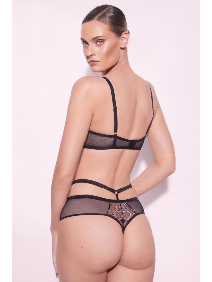 Трусики-стринги Glossy Iris с широким бочком и стрэпами на линии талии. Ластовица хлопковая.