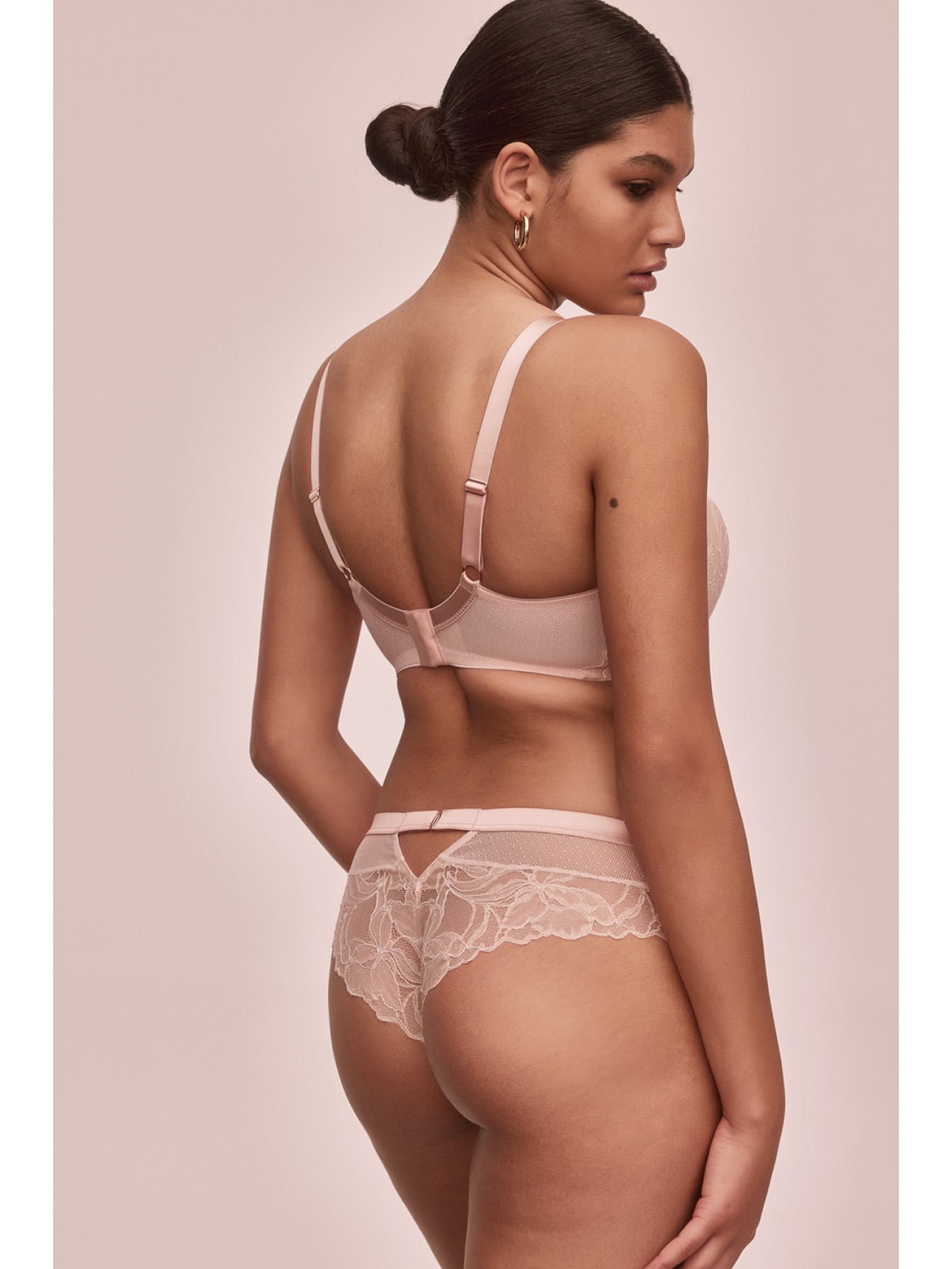 Кружевные трусики-бразилиана Glow. Сзади пикантный вырез украшен эластичными резинками. Ластовица хлопковая.