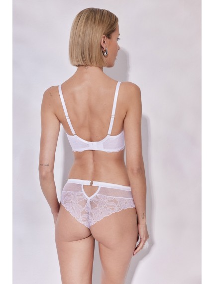 Кружевные трусики-бразилиана Glow. Сзади пикантный вырез украшен эластичными резинками. Ластовица хлопковая.