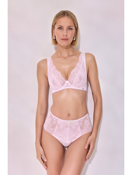 Высокие кружевные трусики-стринги Hush Blush нежного розового цвета. Ластовица хлопковая.