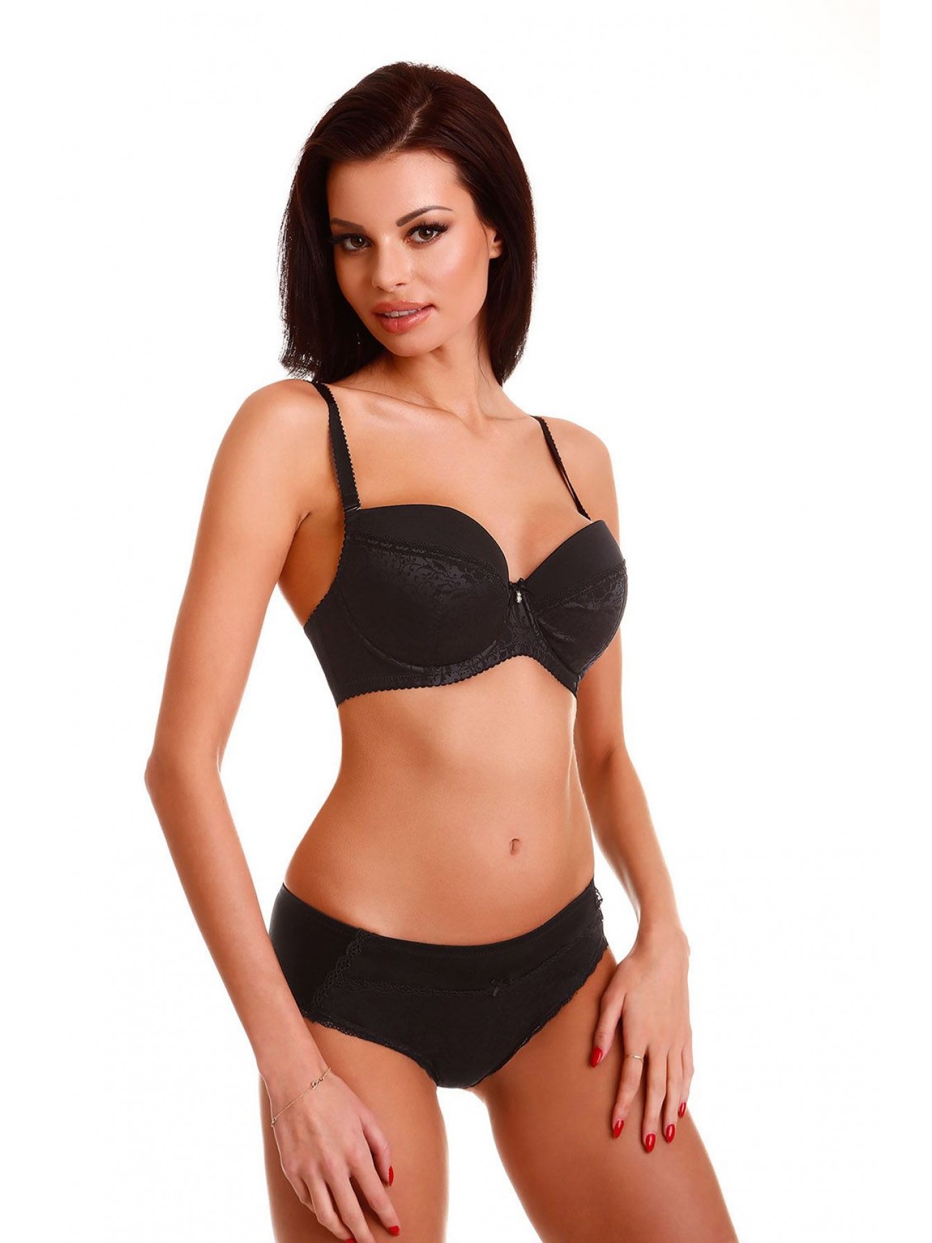 Трусики-слип средней посадки, комбинированы эластичным жаккардовым атласом и плотным трикотажем. Соединительные швы украшены изящным кружевом в тон ткани. Ластовица 100 % хлопок.