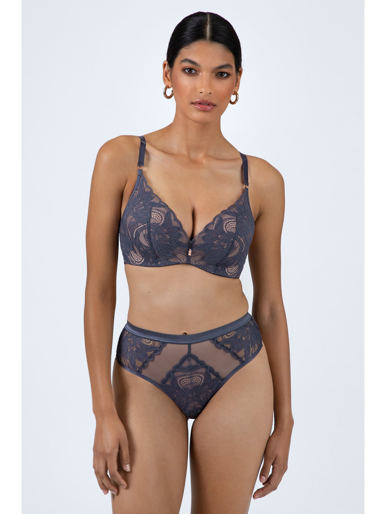 Высокие трусики-стринги Luce Viola. Выполнены из гладкого эластичного материала, эластичной сетки и нежного кружева. Ластовица хлопковая.