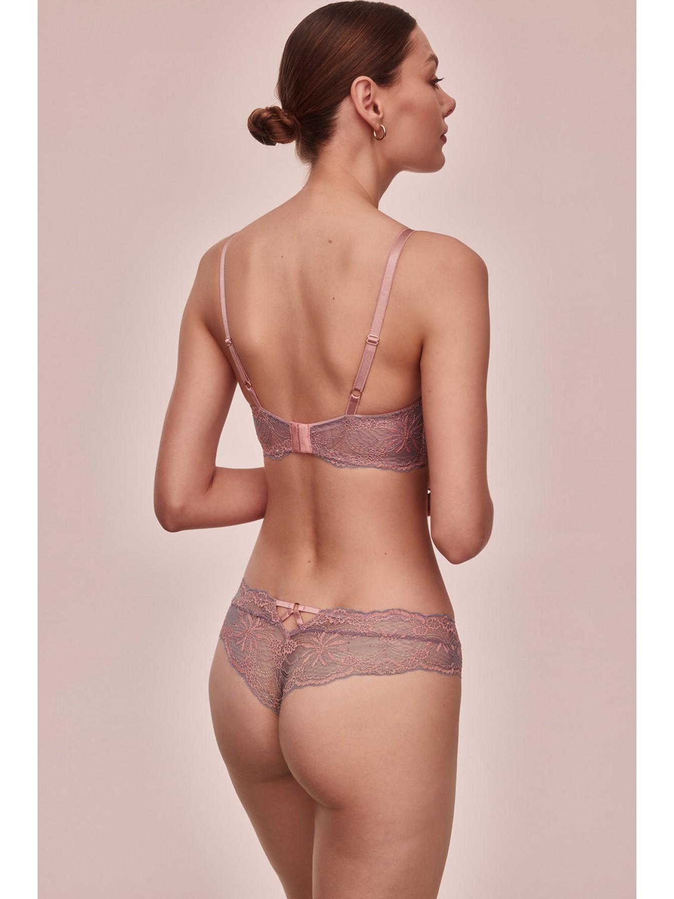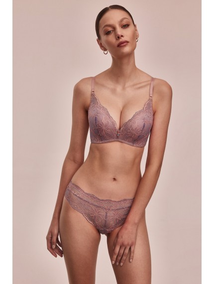Трусики-стринги Madera средней посадки. Выполнены из роскошного сиреневого кружева с цветочным узором. Ластовица хлопковая.