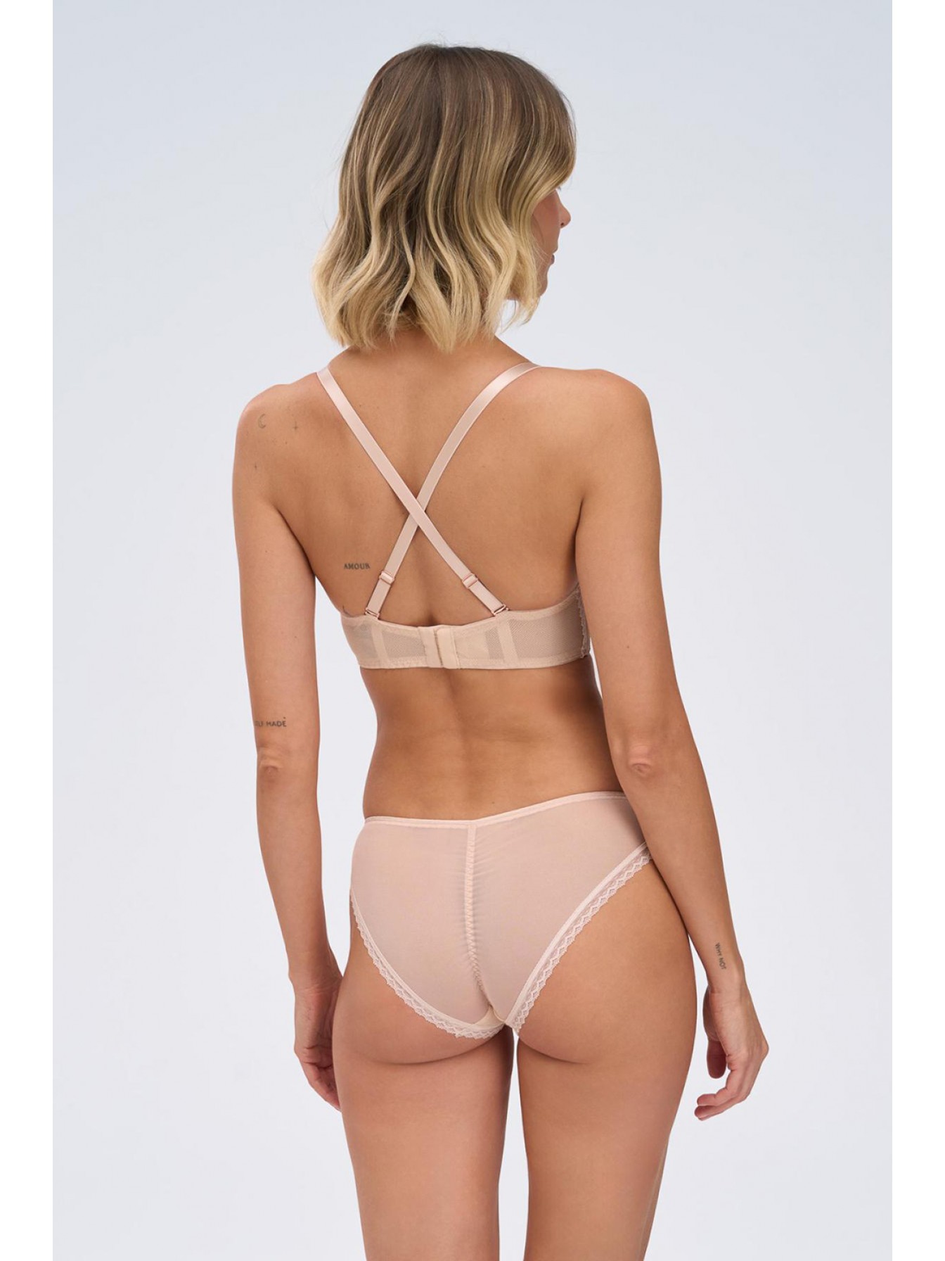 Кружевные трусики-бразилиана Nocturn бежевого цвета. Ластовица хлопковая.