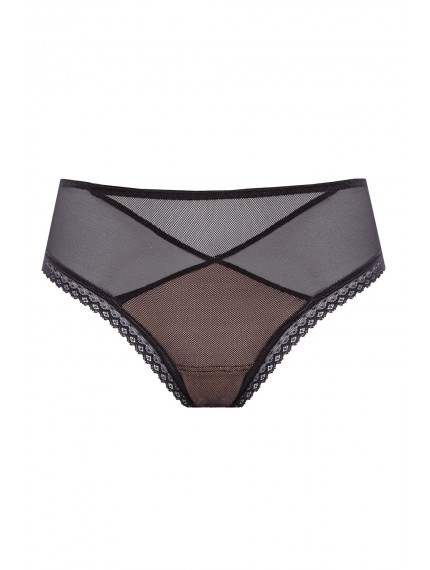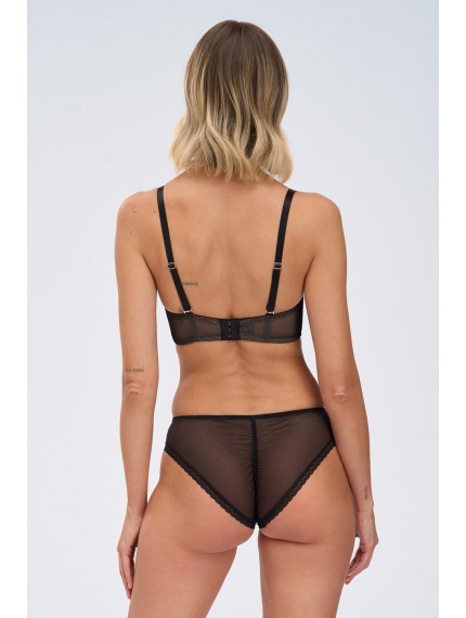 Кружевные трусики-бразилиана Nocturn черного цвета. Ластовица хлопковая.