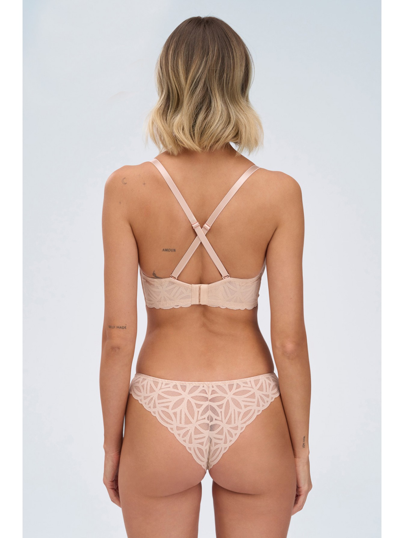 Кружевные трусики-бразилиана Sugar Dune телесного цвета. Ластовица хлопковая.