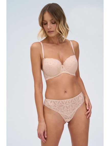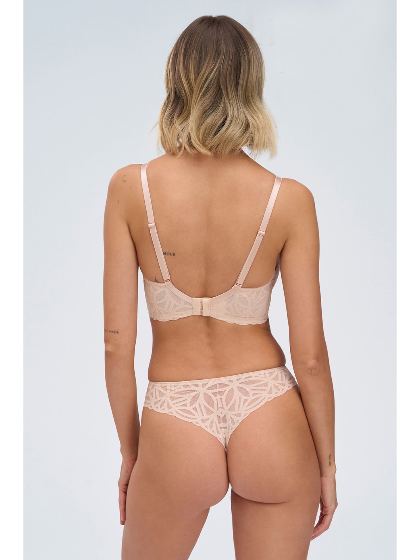 Высокие кружевные трусики-стринги Sugar Dune телесного цвета. Ластовица хлопковая.