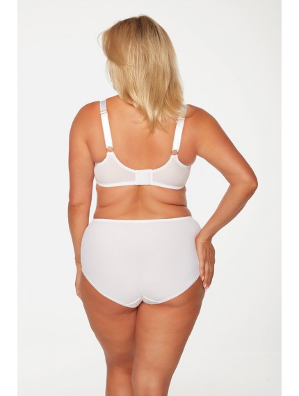 Белые трусы из линейки Subtle Temptation. Классические, высокие трусики из нежной микрофибры, украшенные уникальной вышивкой. Очень удобные, они хорошо закрывают ягодицы.Гладкая спинка делает трусики практически незаметными под одеждой. Ножки отделаны тесьмой, которая сшита по технологии плоского шва, обеспечивая максимальный комфорт при ношении.