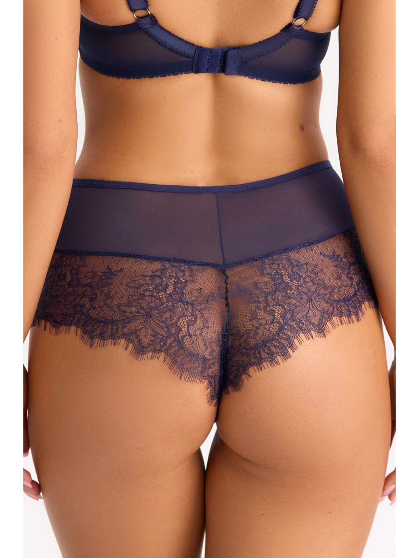 Высокие темно-синие бразилиана из линейки Magic Sapphire с кружевными вставками. Выполнены из прозрачного тюля и сетки.