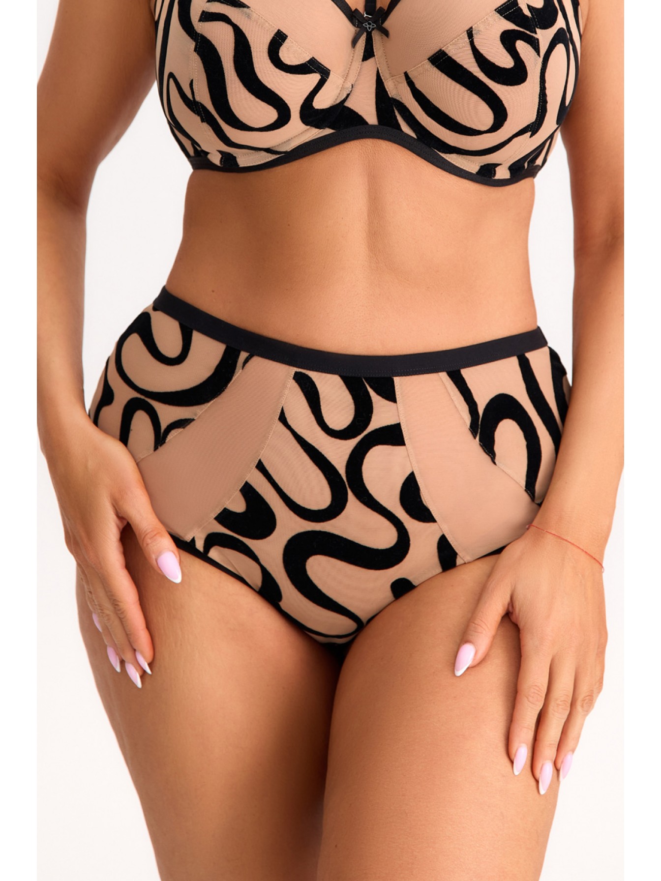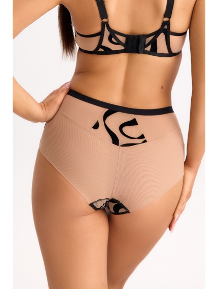 Базовые телесные трусики-слип из линейки Black Agate. Нежные и женственные трусики с чуть завышенной талией. Изготовлены из полупрозрачной тонкой сетки, украшены красивой вышивкой спереди, что придает им изысканный вид. Ножки отделаны тесьмой, которая сшита по технологии плоского шва, обеспечивая максимальный комфорт при ношении.