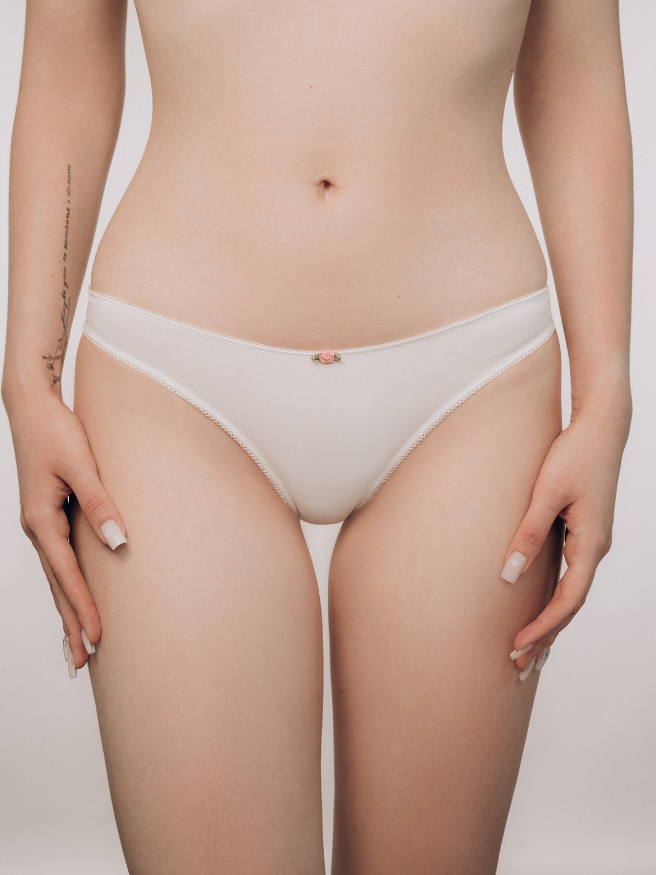русы слипы женские 0143LUS бренда Indefini изготовлены из смеси бамбука и хлопка.Выполнены в классическом белом цвете.Тонкая мягкая резинка фиксирует трусы на талии без давления.Трусы имеют среднюю посадку.Их внутренняя сторона дополнена хлопковой ластовицей.Фактура ткани спереди гладкая, а сзади выполнена в кружеве.Спереди на резинке имеется маленькая декоративная роза.