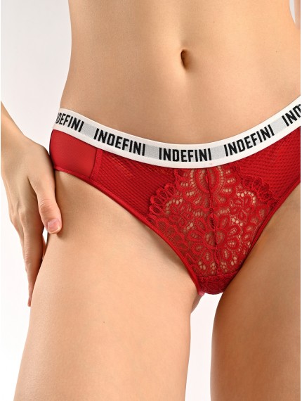 Женские кружевные трусы-слипы Indefini — воплощение элегантности и комфорта в каждой детали. Модель выполнена в насыщенном красном цвете и украшена кружевным узором, который придает изделию особый шарм.Трусы изготовлены из высококачественной ткани, состоящей из полиамида и эластана. Такой состав обеспечивает изделию превосходную эластичность, комфорт при носке и долговечность.