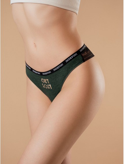 Женские хлопковые трусы-стринги обеспечивают максимальный комфорт при ношении, поглощая влагу и пропуская воздух к телу.Благодаря мягкой резинке, изделие удобно садится на талии. Средняя посадка делает эти трусы универсальными и подходящими для повседневного использования.Украшением данной модели является надпись на передней части, а сзади изделие украшено кружевом.