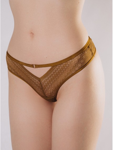 Соблазнительные стринги из нежного кружева насыщенного горчичного оттенка, создающие идеальную посадку по фигуре.Модель украшена резиновыми вставками по центру, декорированные позолоченным ювелирным сплавом.Особенности:✔ Премиальное кружево с мягкой текстурой, не раздражающее кожу✔ Фирменные резиновые окантовки – обеспечивают идеальное прилегание спереди и сзади✔ Эксклюзивный позолоченный элемент в виде изящной детали в передней части✔ Стильная цветовая гамма с модный горчичный оттенок