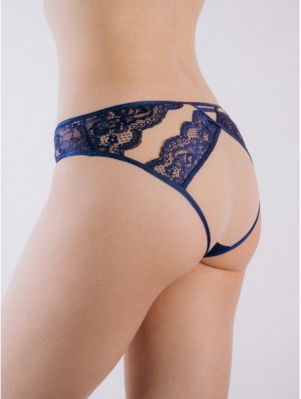 Трусы слипы женские 1224WUV бренда Indefini изготовлены из полиамида.Трусы имеют среднюю посадку, удерживаются во время носки тонкой мягкой резинкой.Ткань выполнена в синем цветочном кружеве, спереди и сзади имеются сетчатые вставки.На задней части имеется треугольный вырез.На внутренней стороне трусов расположена хлопковая ластовица.