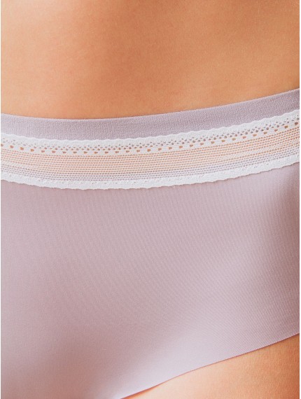 Трусы танга женские 1260LUS бренда Indefini изготовлены из полиамида.Бесшовные трусы средней посадки с кружевной резинкой на талии.Внутренняя сторона трусов танга дополнена хлопковой ластовицей.