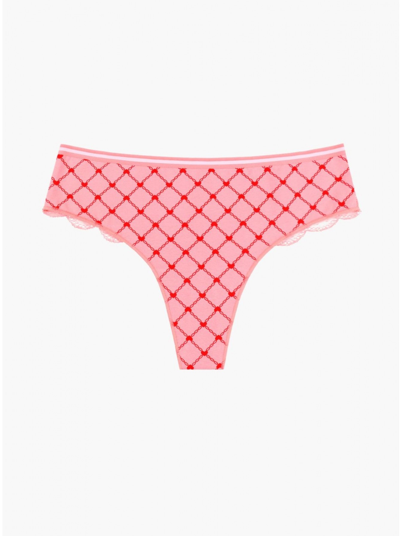 Женские трусы-стринги из хлопка в ярком розовом цвете с красным принтом и с кружевными узорами от торговой марки Indefini - это отличный выбор для любой женщины.Эти трусы не только комфортны благодаря использованию хлопка, но и являются ярким акцентом, добавляющим светлости и энергии вашему образу.Они отлично подчеркивают женственность, а их превосходный дизайн и красивые оттенки делают их по-настоящему привлекательными.Кружевные узоры придают им стильность и элегантность.
