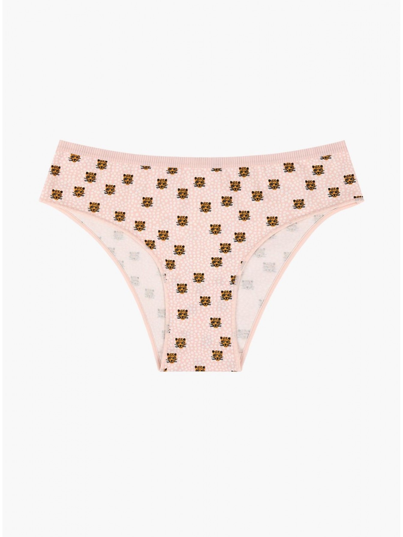 Трусы танга женские 2302LUB бренда Indefini изготовлены из хлопка. Выполнены в розом цвете. Трусы средней посадки на мягкой эластичной резинке. На трусы нанесен анималистичный принт