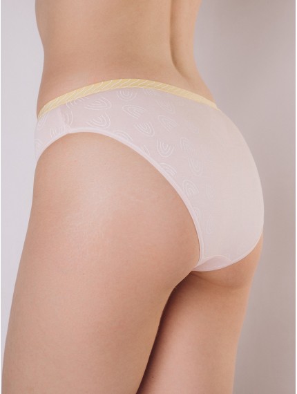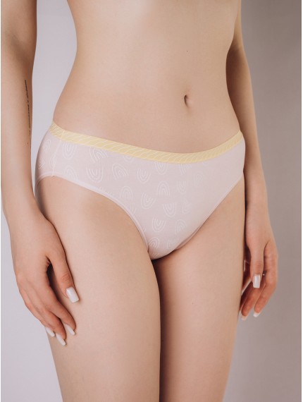 Трусы слипы женские 3084LUF бренда Indefini изготовлены из хлопка.Выполнены в розовом цвете с абстрактным принтом.Трусы с мягкой эластичной жёлтой резинкой на талии имеют среднюю посадку.На внутренней стороне трусов расположена хлопковая ластовица.