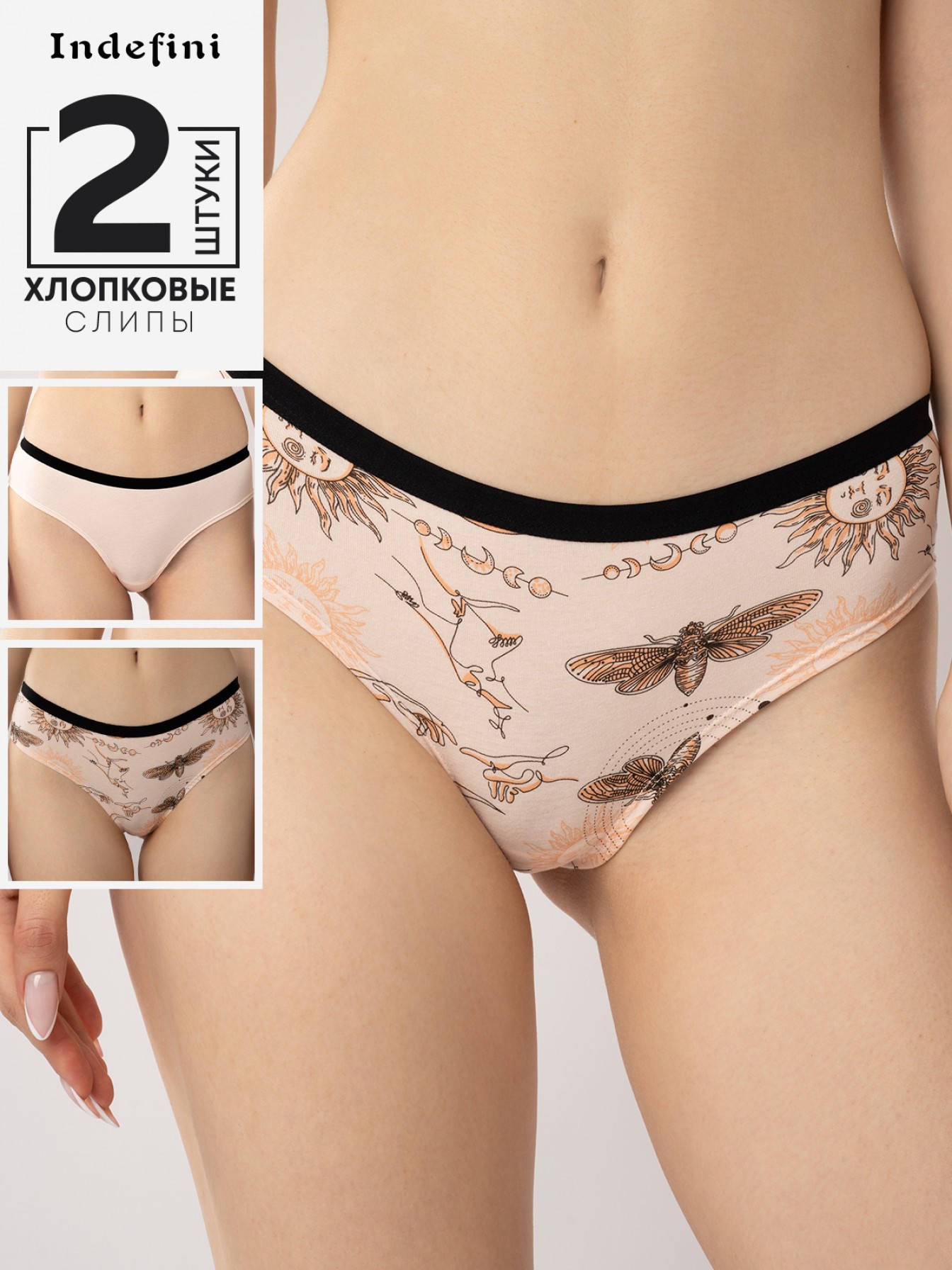 Комплект трусов-слипов от бренда Indefini — это сочетание утончённого дизайна, комфорта и натуральных материалов. В комплект входят две модели: одна с оригинальным принтом и вторая в классическом цвете, что делает его универсальным решением для повседневной носки.
