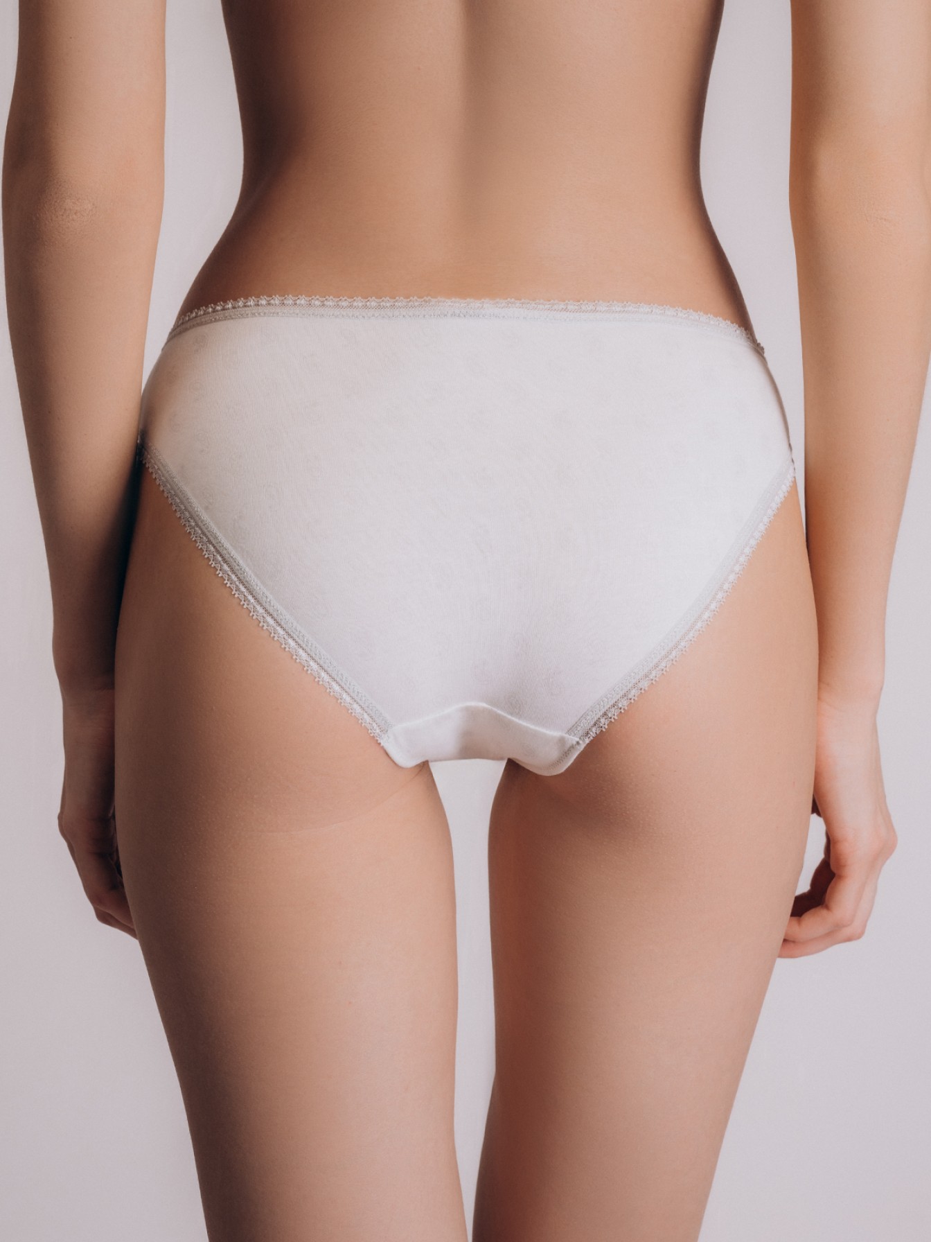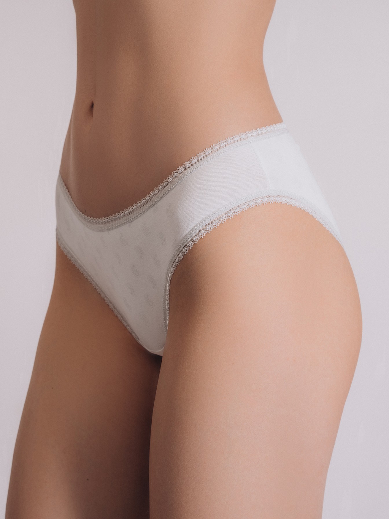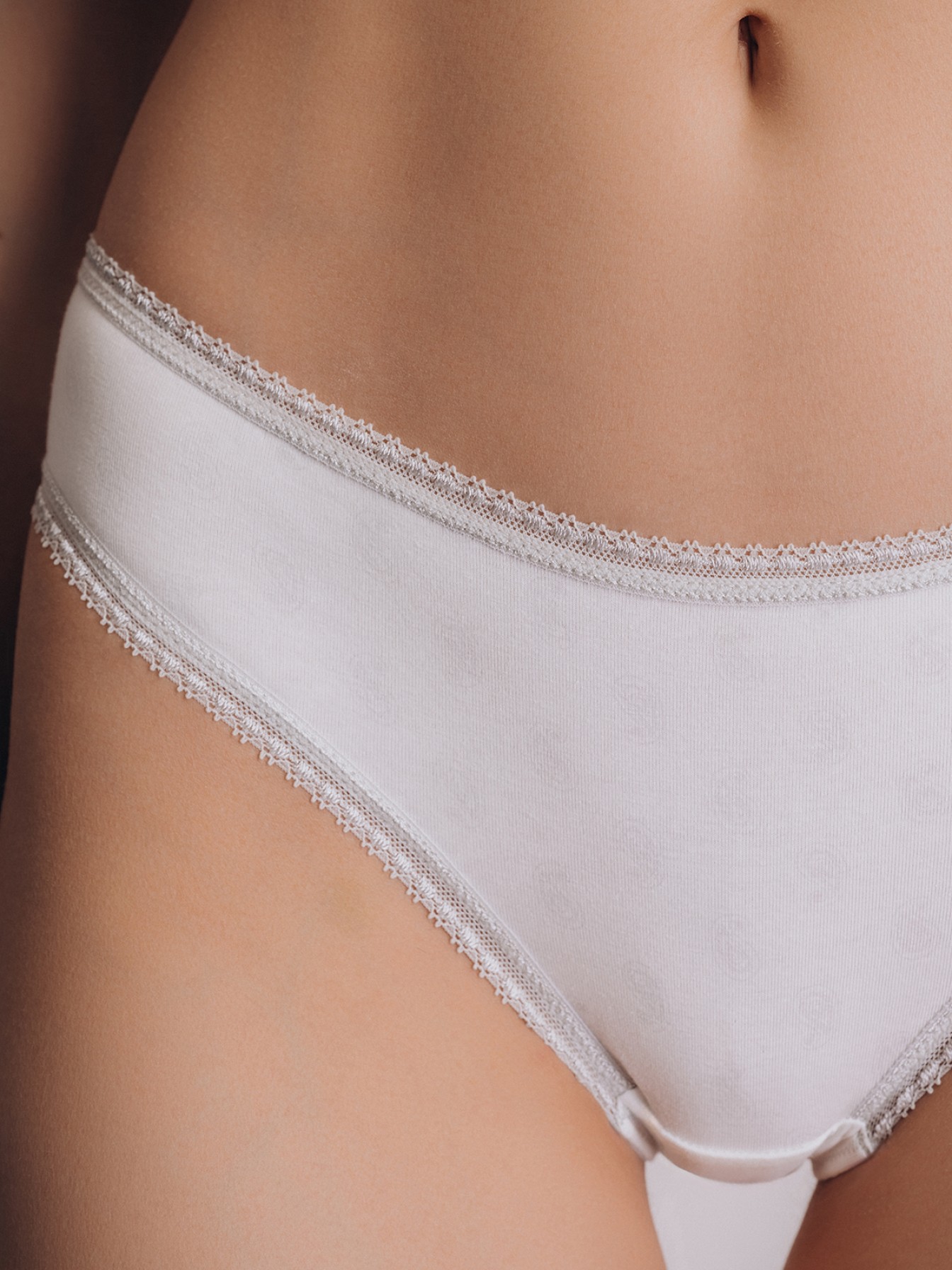 Белые хлопковые трусы от indefiniЕле заметный, ненавязчивый принт, кружевная окантовка.