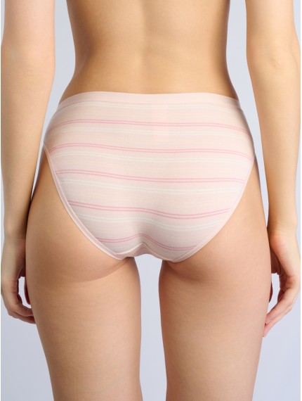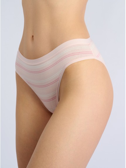 Нежные женские трусы-слипы Indefini выполнены из мягкого хлопка с добавлением эластана, что обеспечивает идеальную посадку и комфорт на протяжении всего дня. Модель оформлена в нежной пастельной гамме с тонкими горизонтальными полосками розового и белого цветов — идеальный выбор для тех, кто предпочитает утонченный и романтичный стиль. Эластичный пояс светло-розового оттенка мягко облегает талию, не оставляя следов на коже.