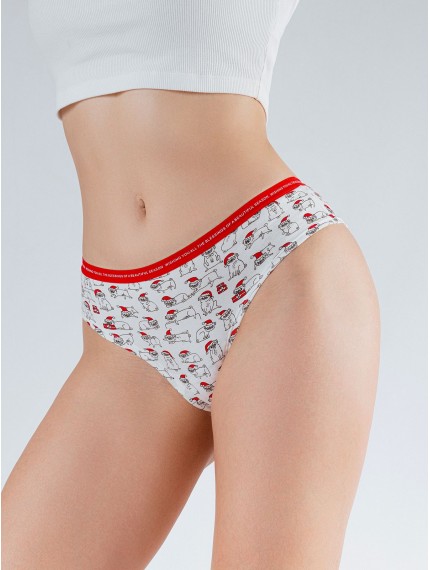 Трусы танга женские 4192LUF бренда Indefini, изготовленные из мягкого и дышащего хлопка, обеспечивают оптимальную посадку и свободу движений. Эластичная резинка на талии надежно удерживает трусы на теле во время носки. Яркий принт с изображением новогодних мопсов добавляет игривый и праздничный акцент, делая трусы танга женские Indefini удобным и веселым элементом гардероба.