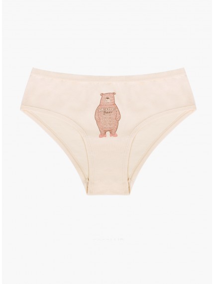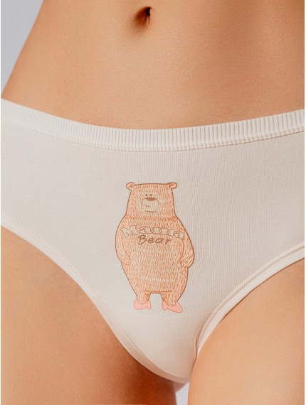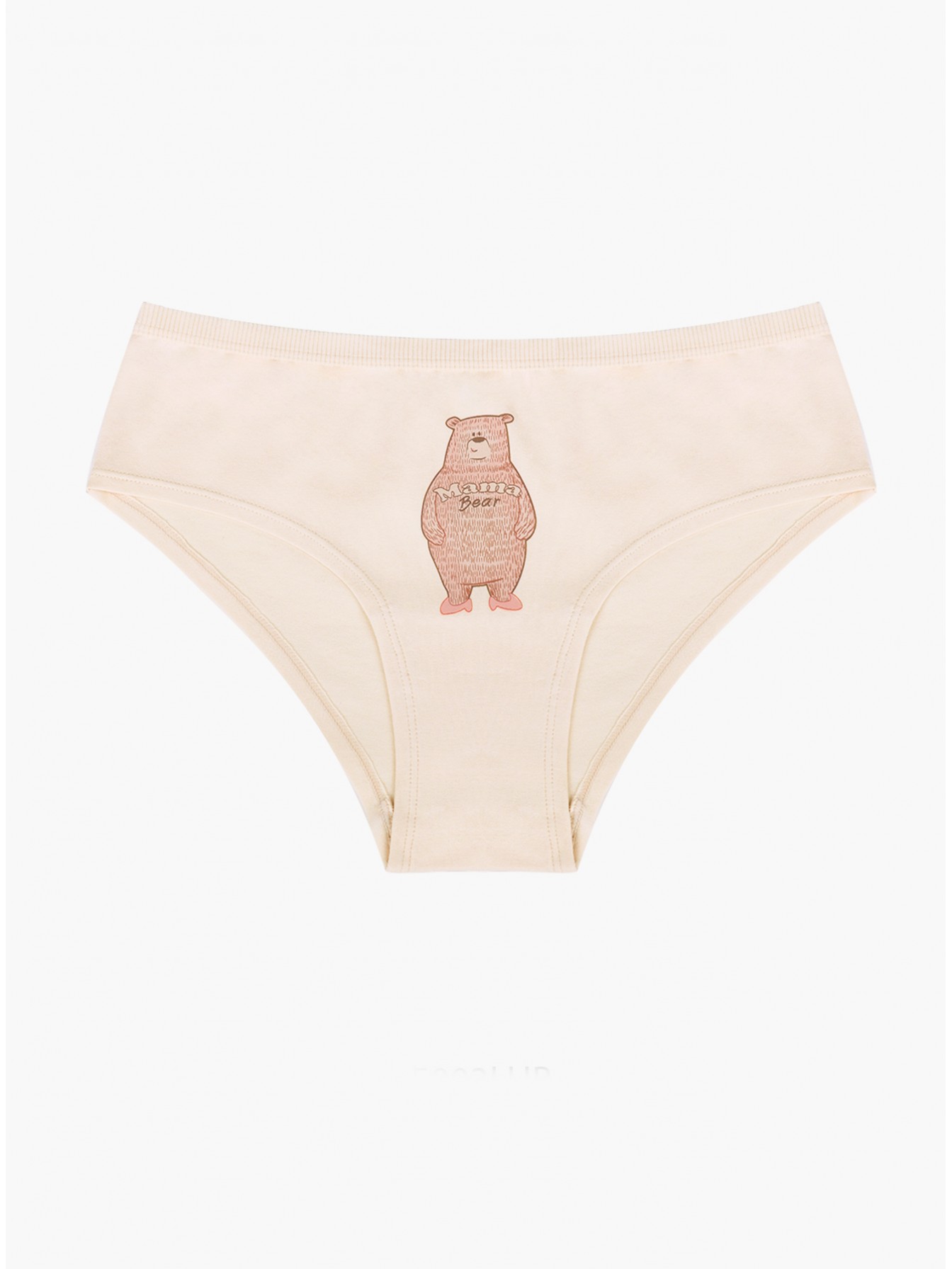 Мягкие трусы бежевого цвета из натурального хлопка с забавным принтом в виде рисунка медведя и надписью "Mama bear". Уютная и удобная модель для повседневной носки.Особенности:— Состав: 95% хлопок — гипоаллергенный, дышащий материал для комфорта в течение дня— Милый принт с медведем и надписью "Mama bear" — игривый и трогательный дизайн— Классический крой — удобная посадка без стягивания— Мягкая резинка — не давит и не оставляет следов на кожеИдеальный вариант для тех, кто хочет добавить нотку тепла и позитива в повседневный образ.