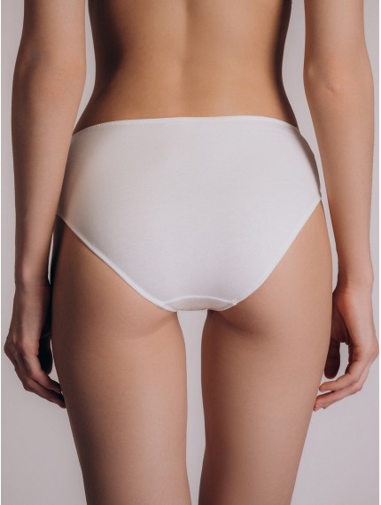 Трусы слипы женские изготовлены из хлопка, выполнены в классическом белом цвете. Трусы имеют среднюю посадку и тонкую резинку на талии. На внутренней стороне трусов имеется хлопковая ластовица. Резинка обрамлена цветочным кружевом.