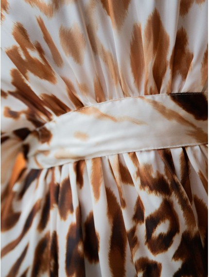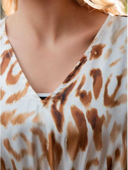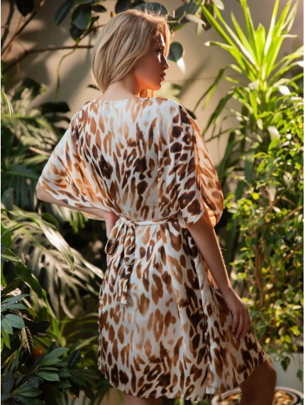 Женская пляжная туника из полиэстера выполнена из легкого и дышащего материала, она быстро сохнет и обладает отличной воздухопроницаемостью. Изделие имеет свободный крой, который не сковывает и обеспечивает свободу движений. В области декольте расположен V-образный вырез. Пояс позволяет регулировать степень облегания модели к телу под личные предпочтения. Украшением туники является анималистичный принт.
