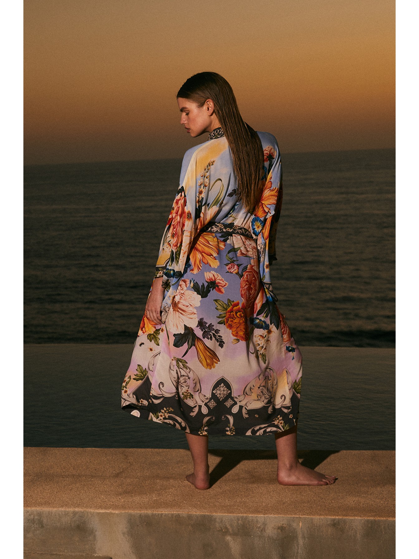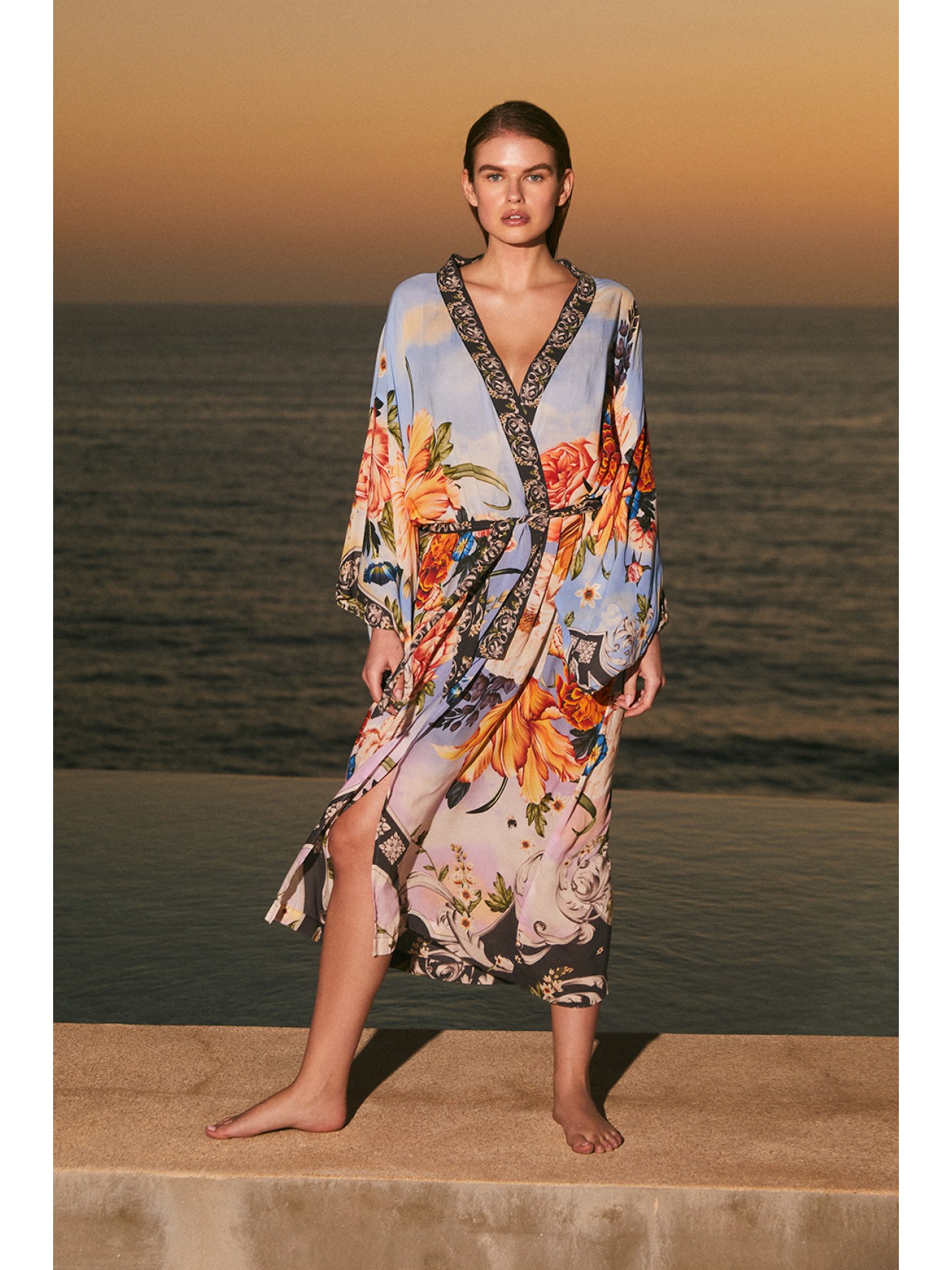 Модное кимоно с уникальным дизайнерским принтом. Может использоваться как купальный ансамбль и элемент верхней курортной одежды.