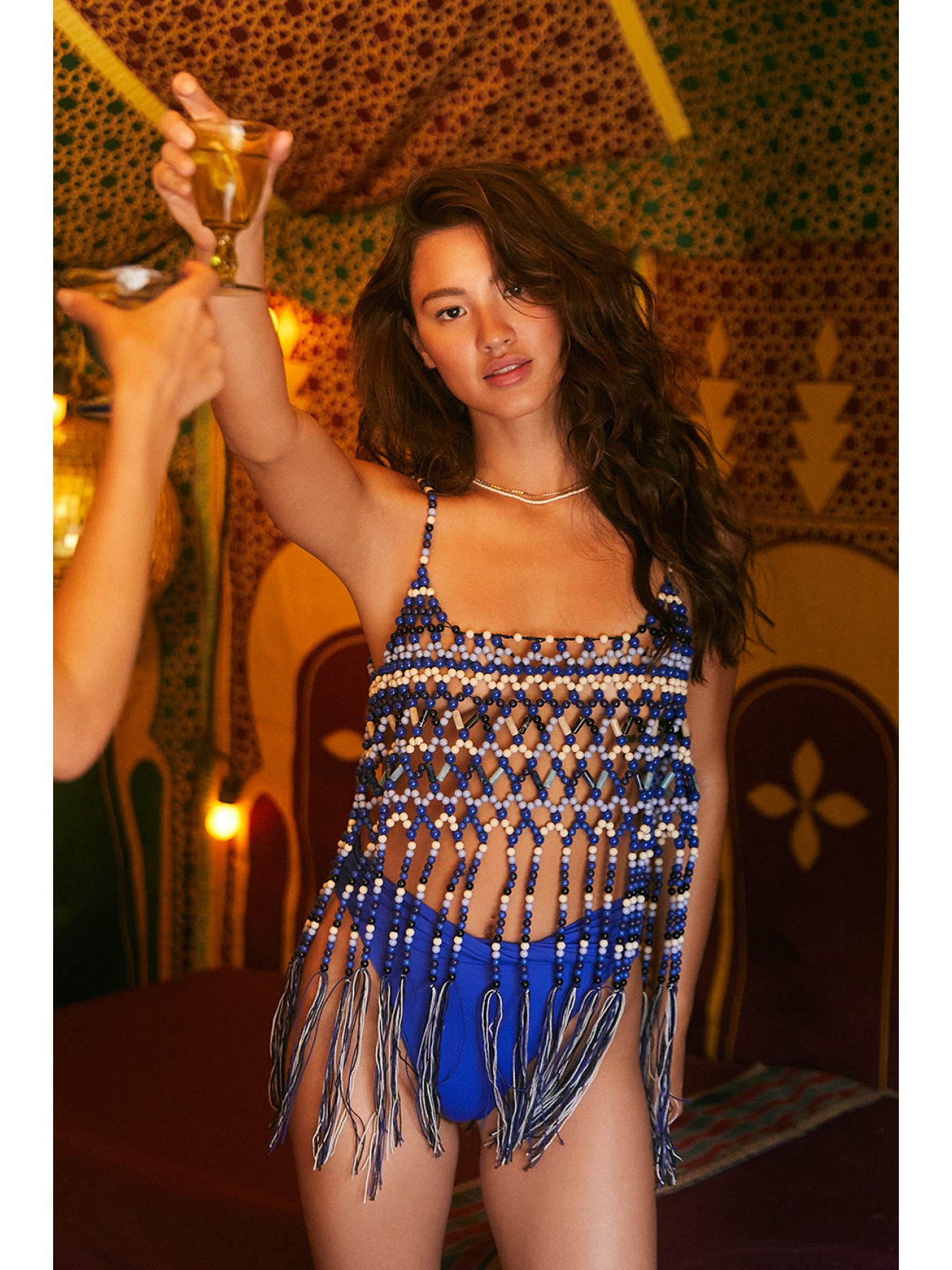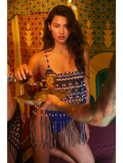 Туника Persia с уникальным дизайном. Выполнена из вязаных нитей и крупных бусин. Может использоваться как купальный ансамбль и элемент верхней курортной одежды.