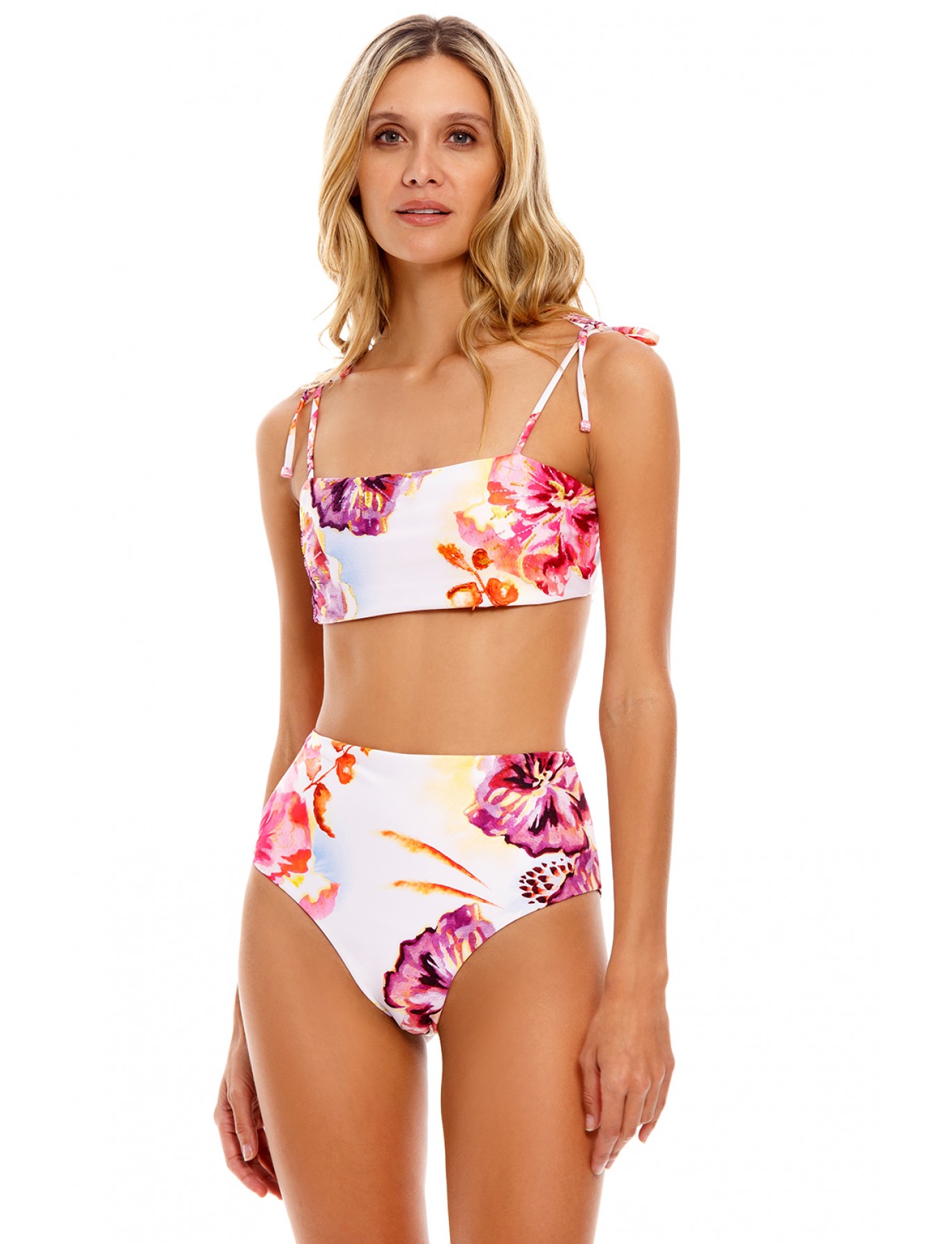 Топ 7594 Tabitha Oazze со съемными вкладышами и регулируемыми отстегивающимися бретелями. Украшен роскошным цветочным принтом и элементами ручной работы, вышивкой бисером стеклярусом. Выполнен из люксовой ткани, с тактильным эффектом гладкого и легкого шелка, которая быстро сохнет и сохраняет цвет. Можно носить как элемент курортной верхней одежды. Сочетаете с высокими плавками 7595 Alicia Oazze.